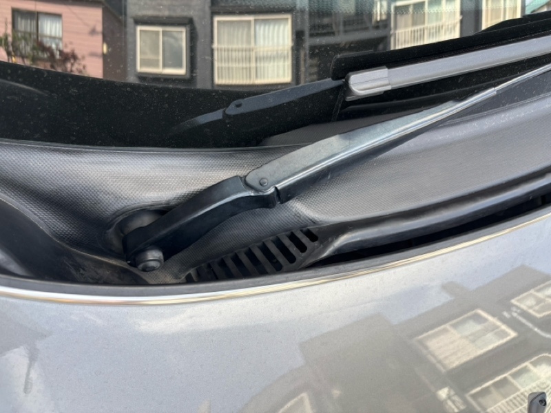 6:ワイパー撤去後、無事ボンネット内のゴムパーツとワイパー下カウルカバー2は難なく外せましたが、肝心のワイパー根元部分のカウルカバーが取れません!外し方も聞いて来たのですが取れません💦