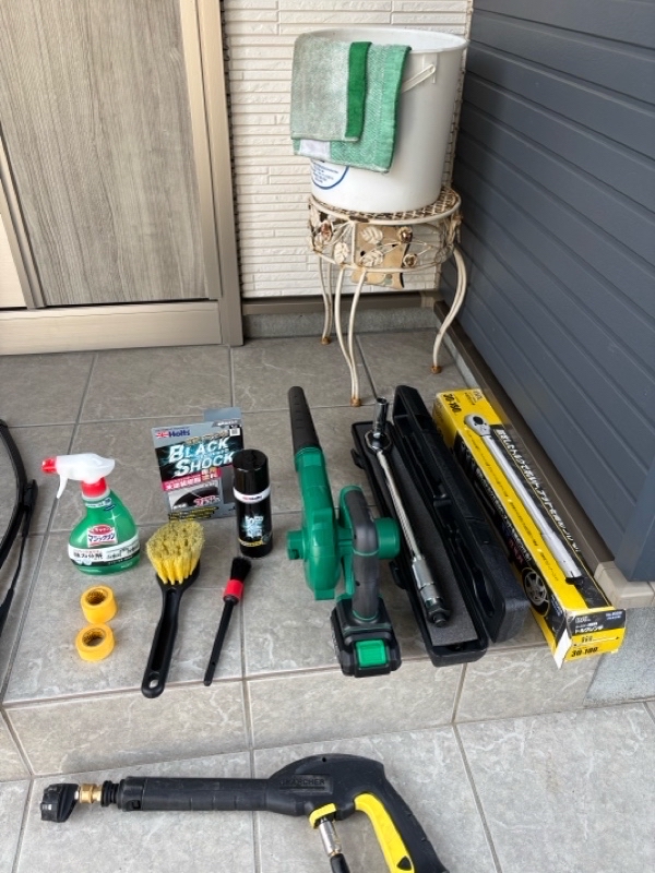 初めに洗車したのでバケツやらブロアやらとケルヒャーも…