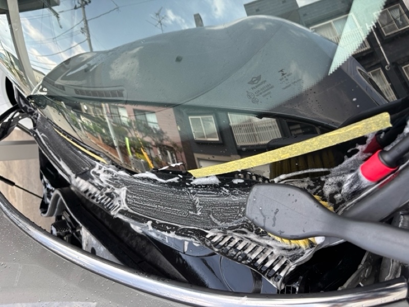 ただし、1ヶ月程前にタイヤ用の黒いワックスを塗布して誤魔化していたので写真ではあまり目立ちませんが、雪国に住んでいるのでワイパー下部分は雪が溜まり、スノーブラシなどでガンガン叩いたり削ったりで白化だけで無く相当傷やらで傷んでいました。